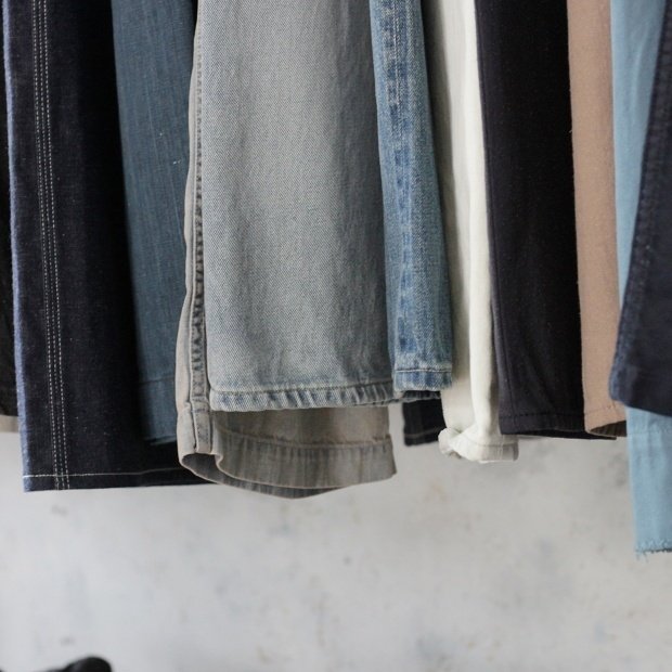 デニム、軍パン、スラックス、トラックパンツ、スウェットパンツ、ショートパンツ。