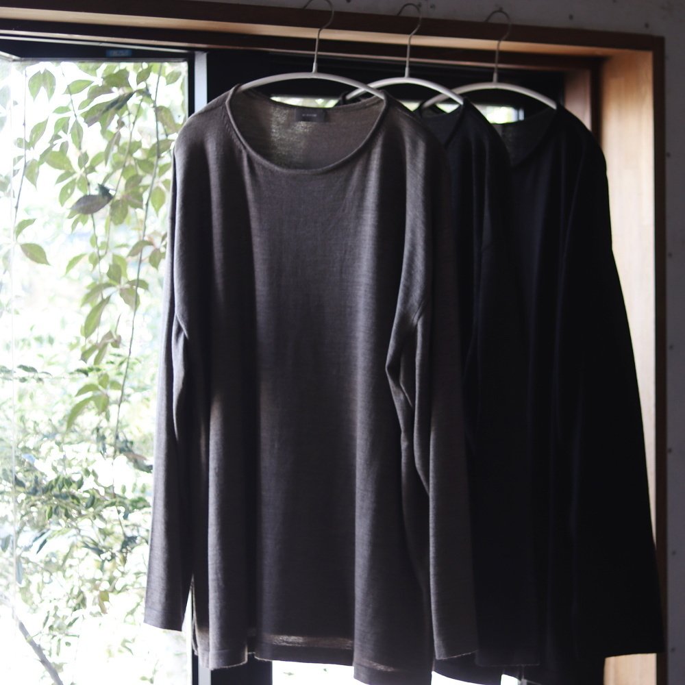 頻度としては季節問わずにニットの質感を求める事が多くなり、だから常々秋口にもサラッと着やすいニットが無いものか、と考えていた。