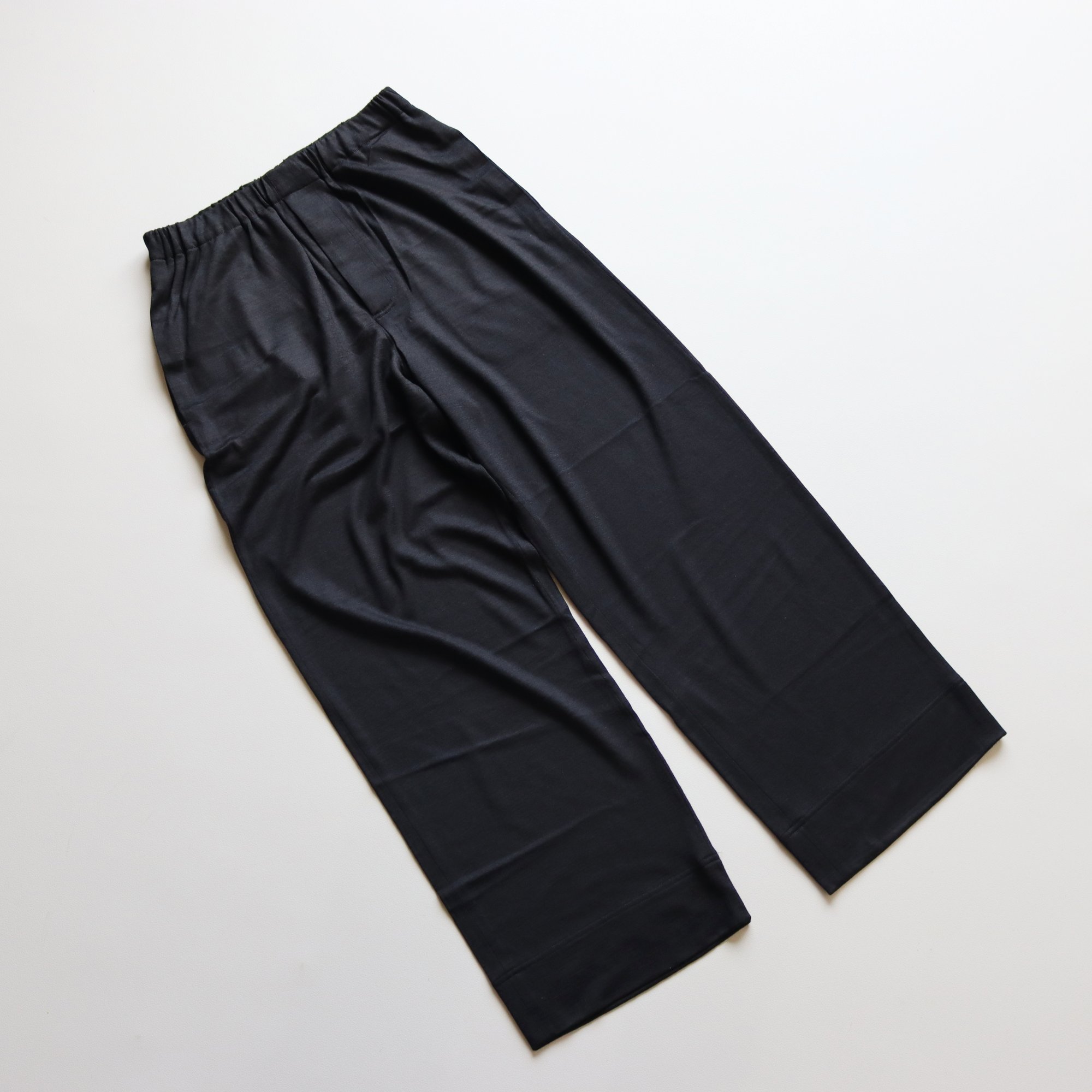 ウールジャージーの艶やかな表面感と豊かなドレープ性を活かすゆったりとしたフィッティング。